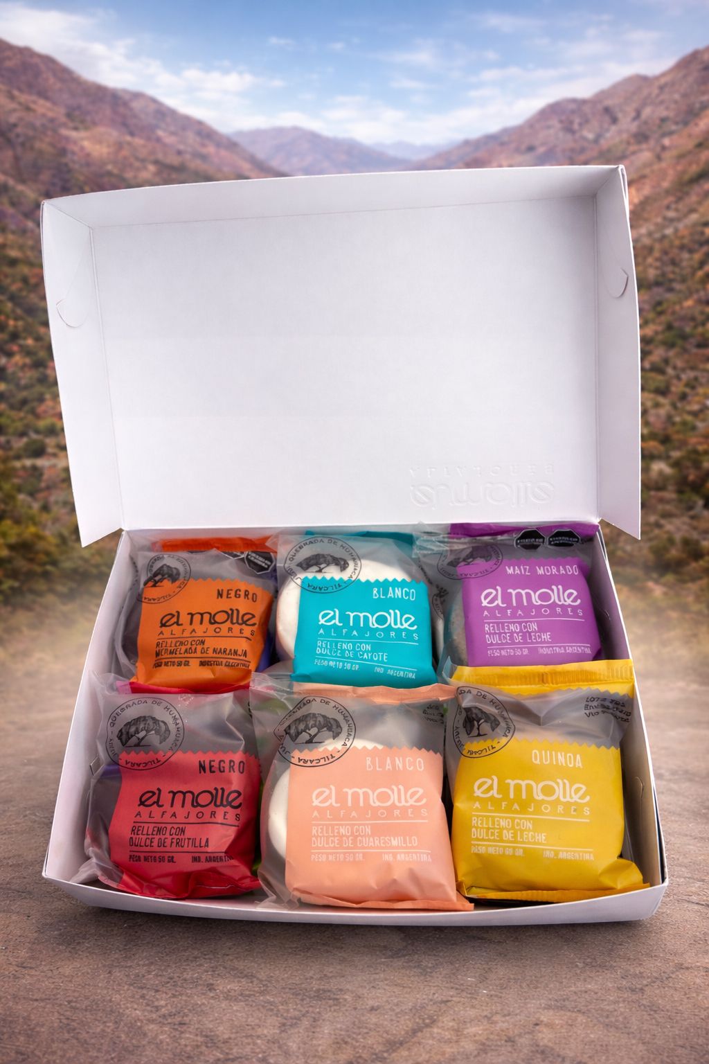 Caja x 12 unidades de alfajores surtidos a eleccion . Peso aproximado 720 gs Al momento de confirmar su compra en el mensaje especificar gustos